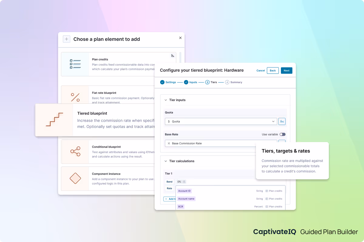 CaptivateIQ's new Guided Plan Builder is a point-and-click experience that makes building and managing commission plans faster and easier—without boxing you in.