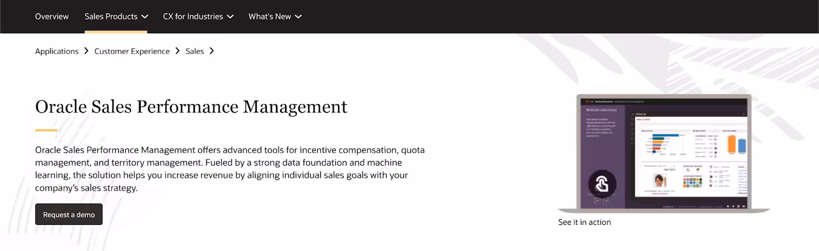 Oracle’s Sales Performance Management suite sits exactly where you’d expect: squarely in the enterprise tier, optimized for scale, and deeply integrated into Oracle’s broader cloud ecosystem. For teams already invested in Oracle Sales Cloud, HCM, or ERP, its SPM tool offers tight data alignment and enterprise-grade configurability.